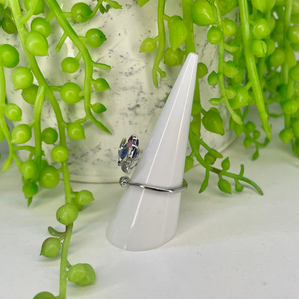 Adjustable Lotus Cubic Zirconia Sterling Silver Ring