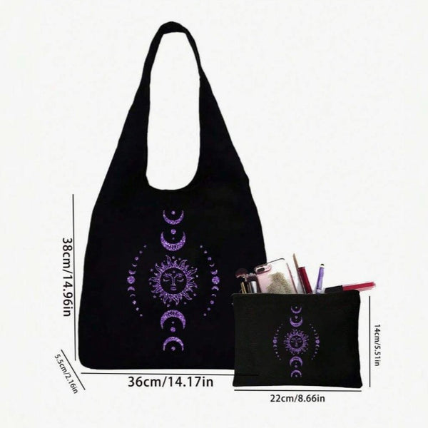 Black Canvas Tote Bag & Cosmetic Bag Set